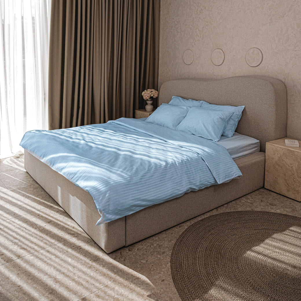 Цей матеріал має щільність 480 ниток, завдяки чому поєднує надзвичайну м’якість і високу міцність. Характерна смугаста текстура додає постільній білизні вишуканості та робить спальню затишною й елегантною.