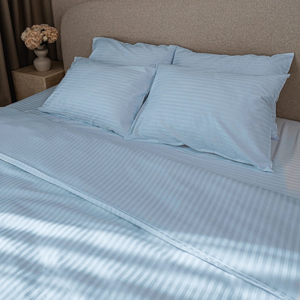 Постільна білизна з турецького страйп-сатину, king size, блакитний
