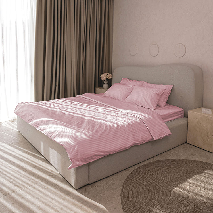 Постільна білизна з турецького страйп-сатину, king size, пудровий
