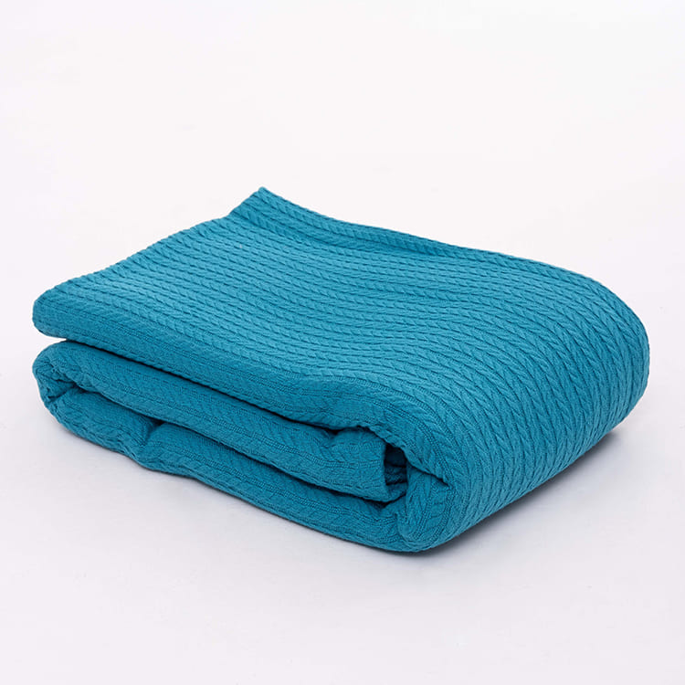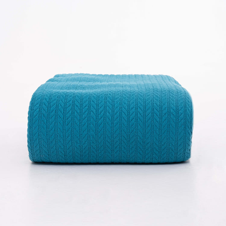 Вʼязаний натуральний плед зі 100% бавовни, півтораспальний, сапфіровий