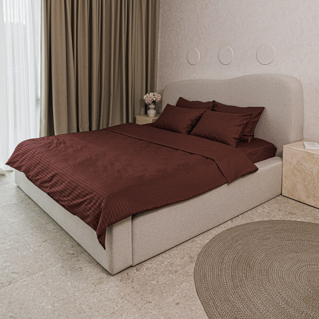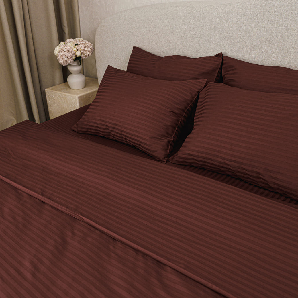 Постільна білизна з турецького страйп-сатину, сімейний, шоколадний